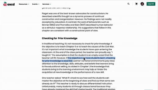 Highlighting follows a similar process. Selecting “Highlight” in the dialog applies a distinct color to the passage for easy differentiation from notes. Users can tap a highlighted passage to edit or delete it, maintaining full control over their interactions. These features create a more dynamic and personalized reading experience for ASCD users.