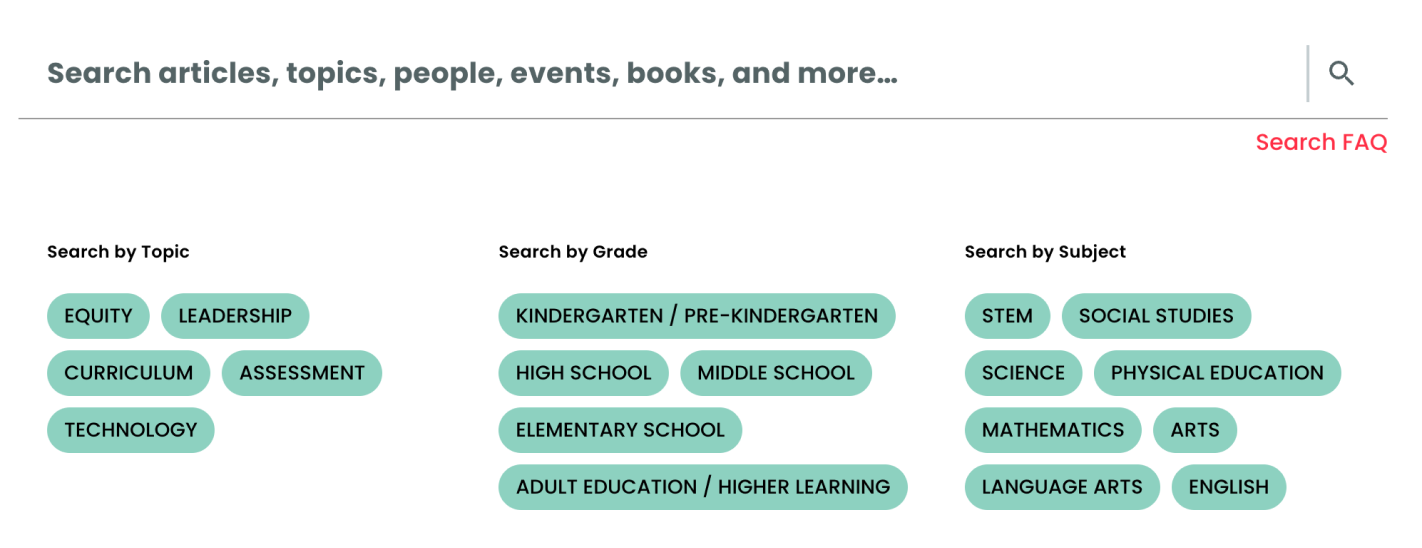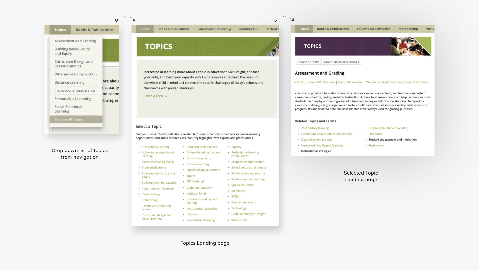 We revamped the topics navigation to better align with user behavior. ASCD features over 30 topics, many with lengthy and complex names.