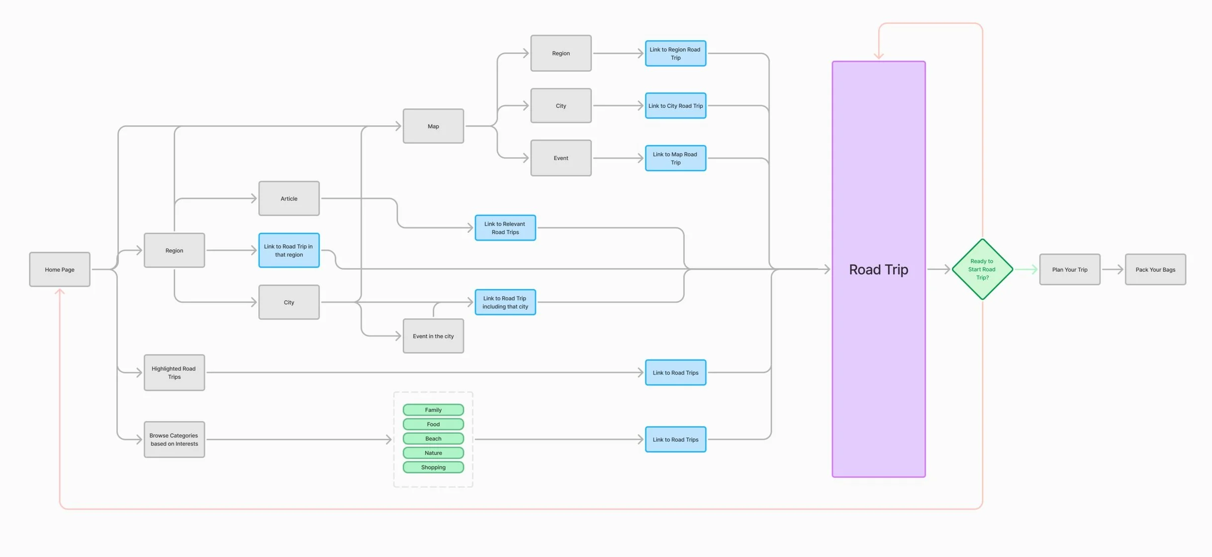 User Journey of road trip planning